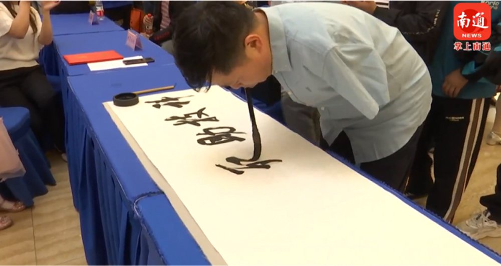 Calligrapher Liu Kaijian demonstrated on the spot