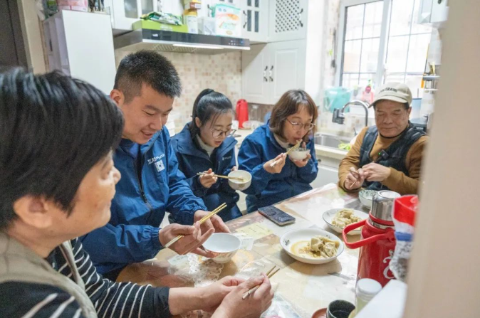 隨著12月上海天氣的轉(zhuǎn)冷,互邦公益團隊決定在拜訪嚴先生夫婦的同時,為他們做一頓簡單的午飯,用一頓熱騰騰的餛飩來表達對他們的關愛與敬意。于是,團隊駕車前往附近的菜市場,采購了包餛飩所需的食材,以及大米、食用油、水果等生活用品。當互邦公益團隊帶著物資抵達嚴先生夫婦家時,嚴先生已經(jīng)在門口熱情地迎接。大家寒暄后,將物資交給嚴先生,并開始準備包餛飩。嚴先生表示,家里的調(diào)料齊全,平時多是他親自下廚。于是,大家分工合作,準備食材,攪拌餡料,包制餛飩。